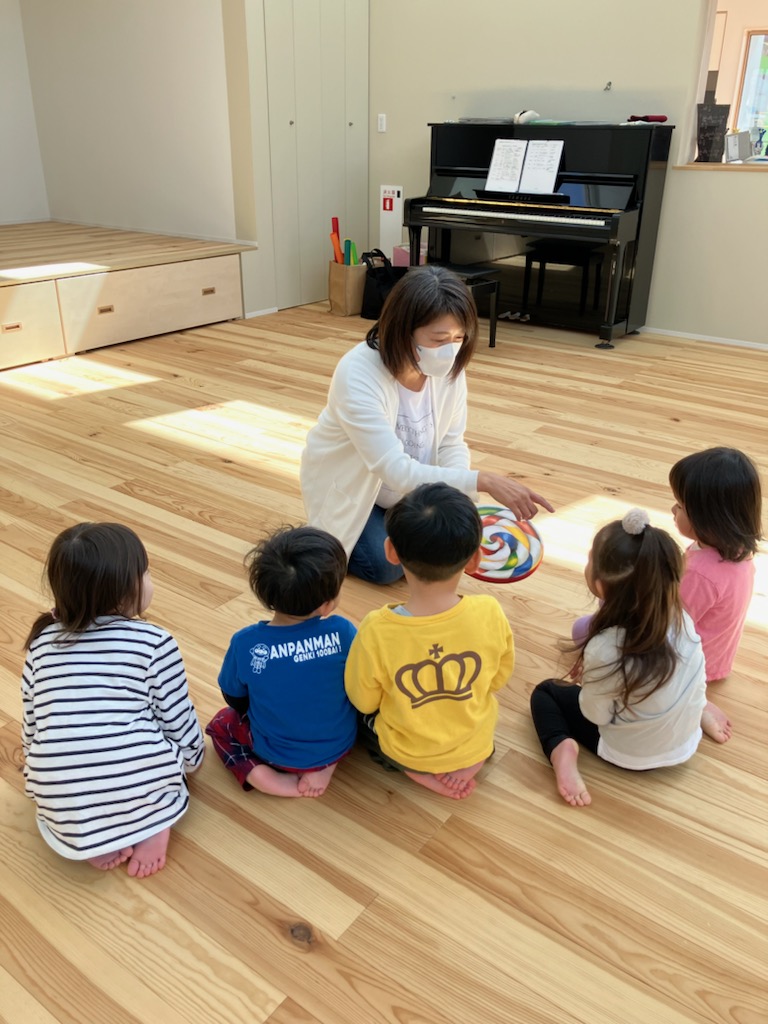 英語教室。ゲームや遊びの中で、毎週金曜日に英語に親しみます。